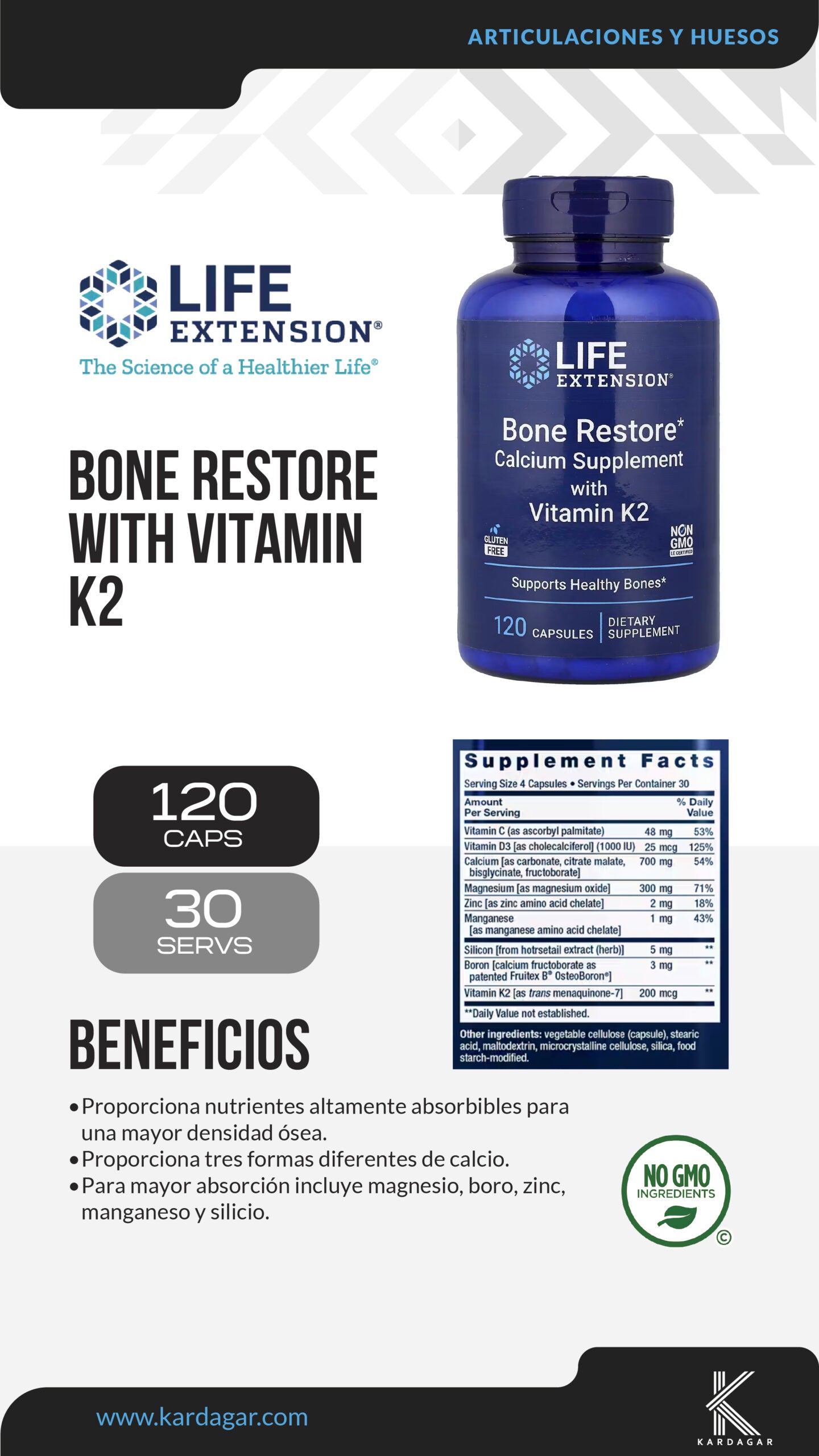 Fortalece la densidad ósea y optimiza la absorción de minerales. Esta fórmula avanzada combina tres formas de calcio de alta biodisponibilidad con nutrientes críticos para asegurar que los minerales se depositen correctamente en el esqueleto de hombres y mujeres. Es la solución definitiva para mantener una estructura ósea sólida y resistente, evitando que el calcio se desvíe hacia las arterias gracias a la acción dirigida de la vitamina K2.