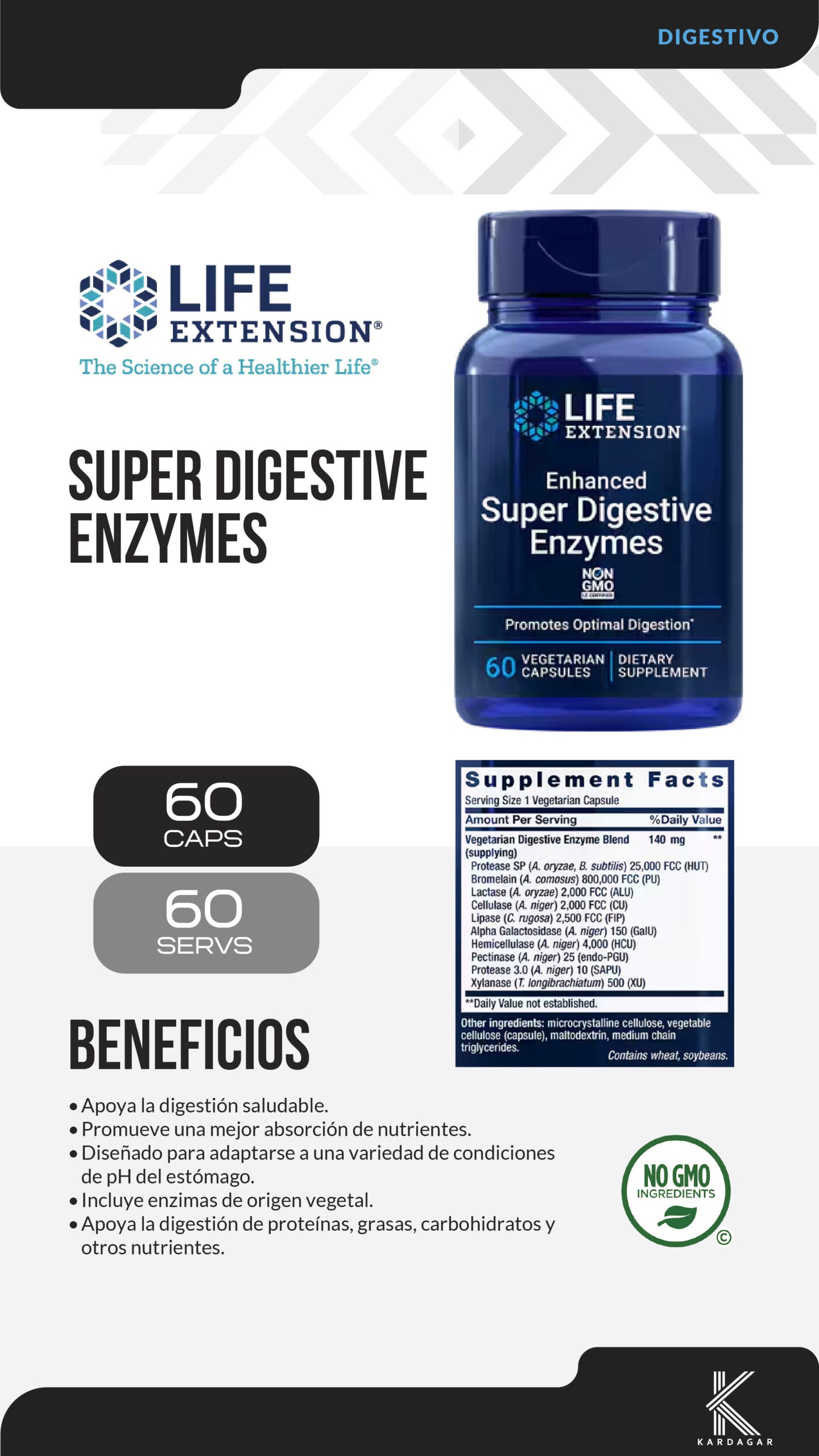 Pureza: Certificación Non-GMO, libre de gluten y formulado con enzimas de origen vegetal más probióticos.
