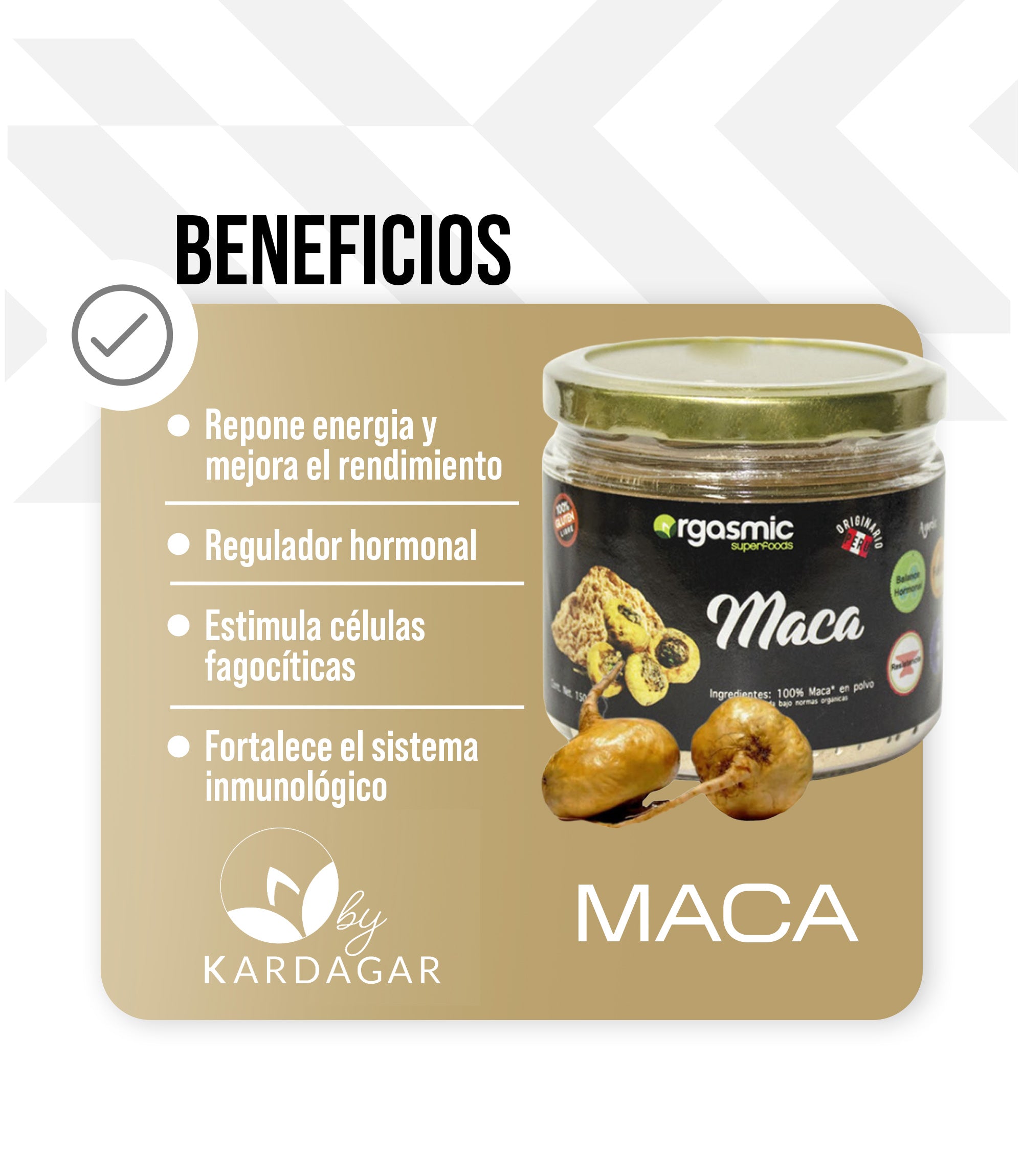 🌱 100% NATURAL: Elaborado exclusivamente con raíz de maca en polvo bajo normas orgánicas, libre de gluten.