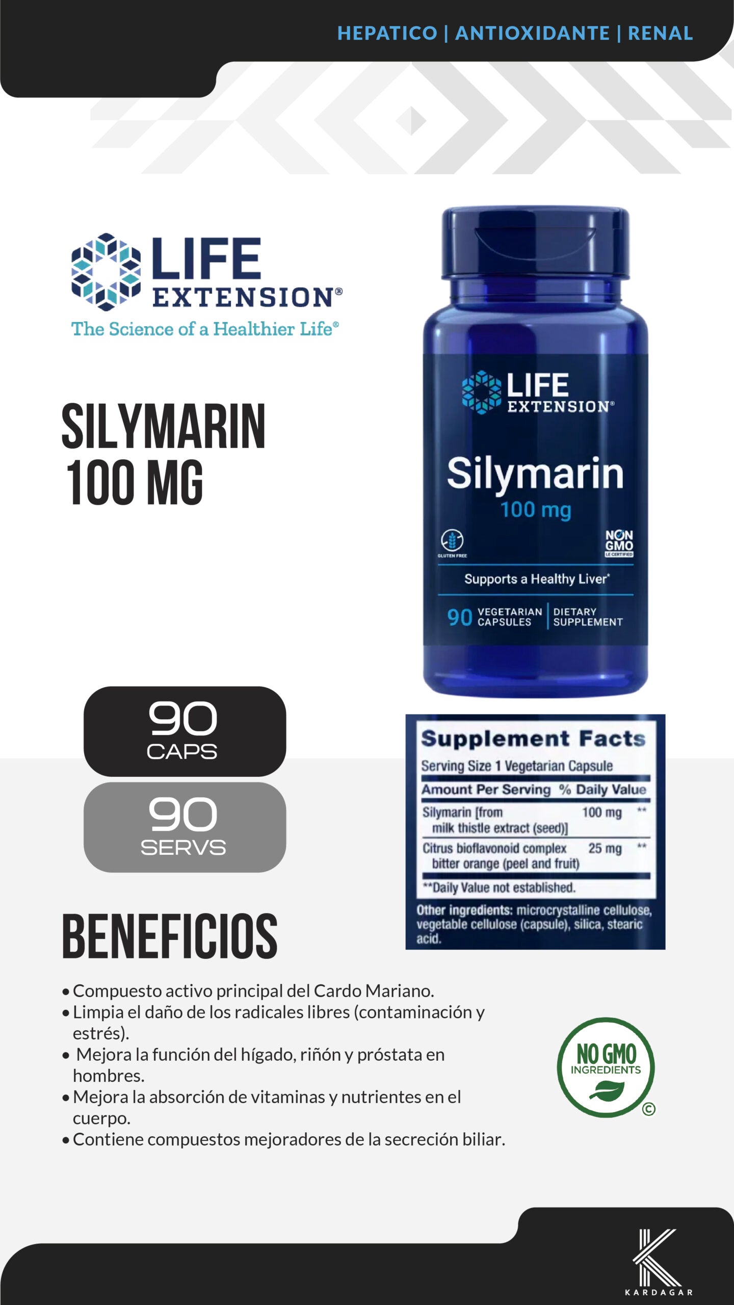 Longevidad y protección integral del hígado, riñón y próstata. Esta fórmula de alta ingeniería utiliza silimarina, el compuesto activo principal del Cardo Mariano, para blindar tus órganos vitales contra el desgaste biológico. Al limpiar el daño provocado por radicales libres, este suplemento no solo optimiza la función hepática, sino que maximiza la vitalidad sistémica y la absorción de nutrientes en todo el cuerpo.