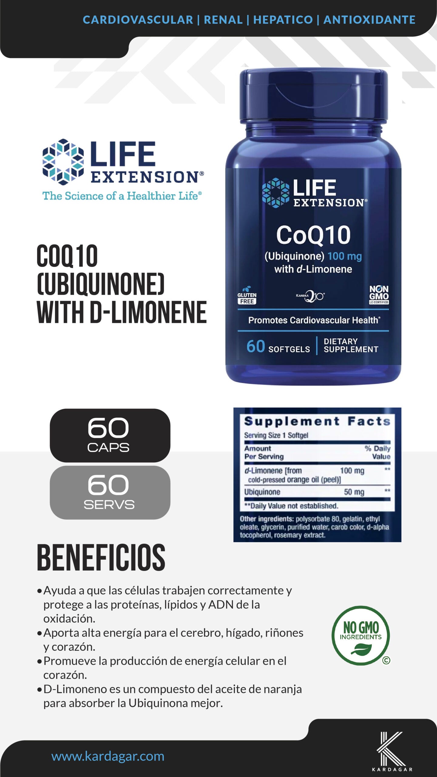 Promueve la salud del corazón y la producción de energía celular al aportar ubiquinol patentado de alta biodisponibilidad. Esta fórmula de ingeniería avanzada utiliza una forma de CoQ10 que permanece más tiempo en el organismo y se absorbe hasta 8 veces mejor que la ubiquinona convencional. Es la herramienta definitiva para que hombres y mujeres aceleren su rendimiento cardiovascular y reduzcan el desgaste oxidativo en los órganos con mayor demanda energética.